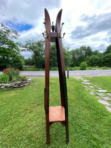 This Antique Ski Coat Rack is crafted with real vintage wooden skis. Each coat rack is slightly unique based on the skis used, giving you a one of a kind fixture. A great piece to convert your entryway into a luxurious ski chateau feel! Functional and upscale, this coat rack will be the perfect addition to your home.
