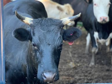 Beefalo is a cross of Bison and domestic cattle. The crossbreed produces high-quality, lean beef that is known for its delicious flavor and texture. In addition to its excellent taste, USDA testing has shown Beefalo to also be a healthier beef - proving to be lower in fat and bad cholesterol, while also having higher protein than traditional beef. Our Beefalo cattle are a crossbreed of Bison and Hereford cattle.
